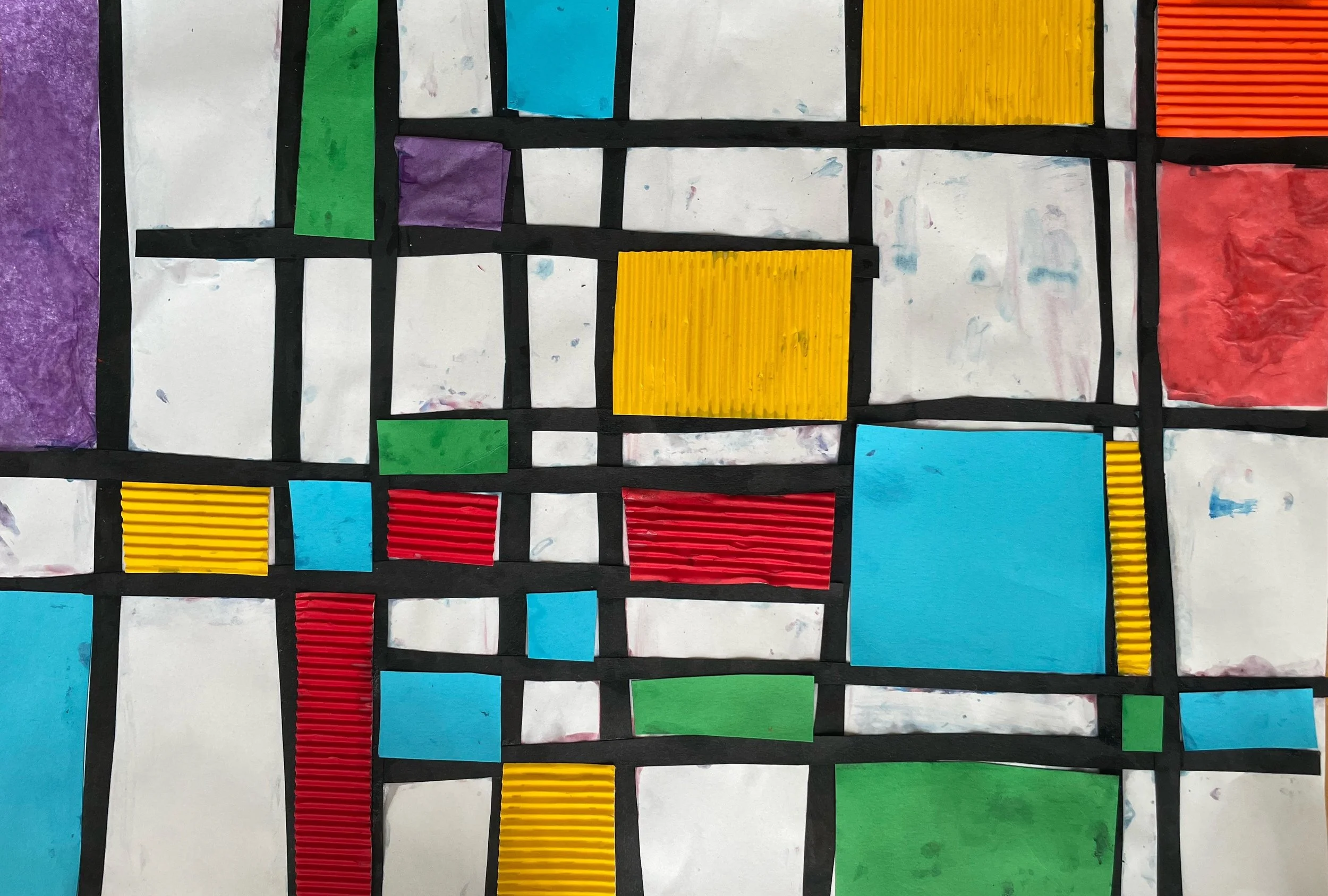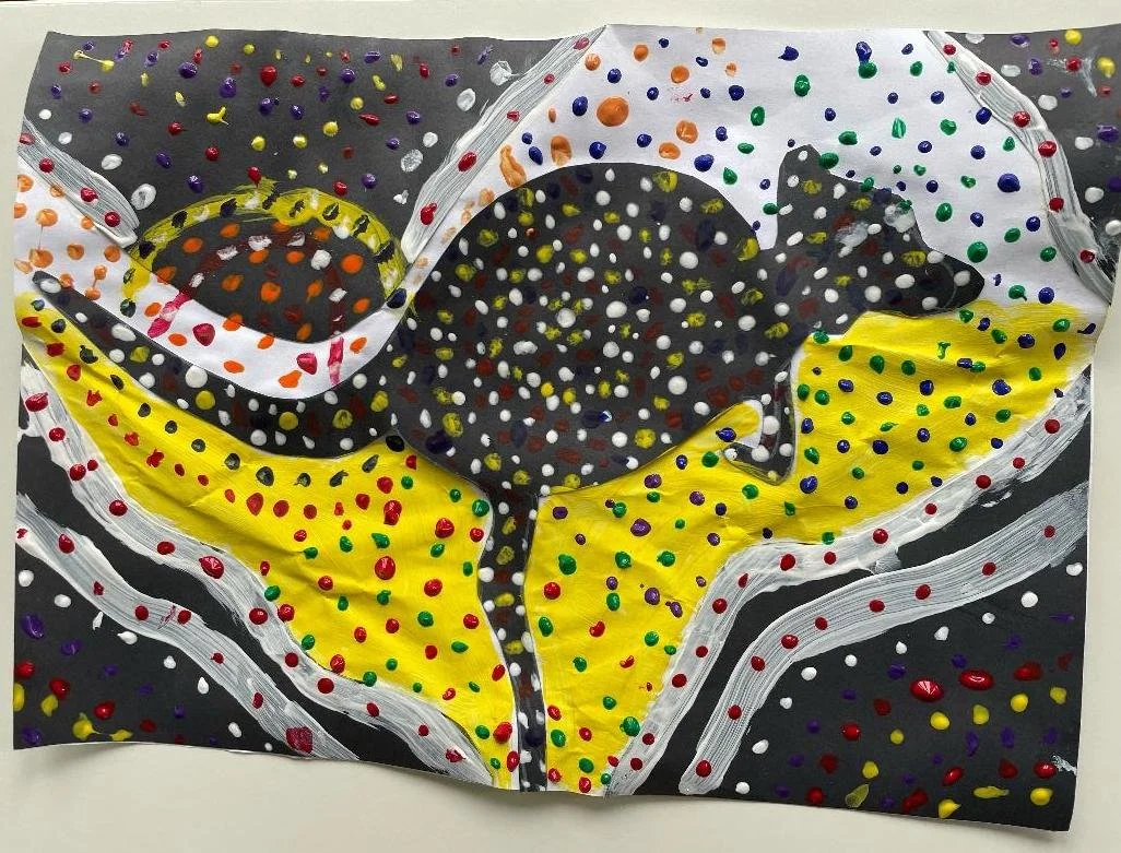 Helen painted the background with assistance using yellow and green acrylic with sponge.