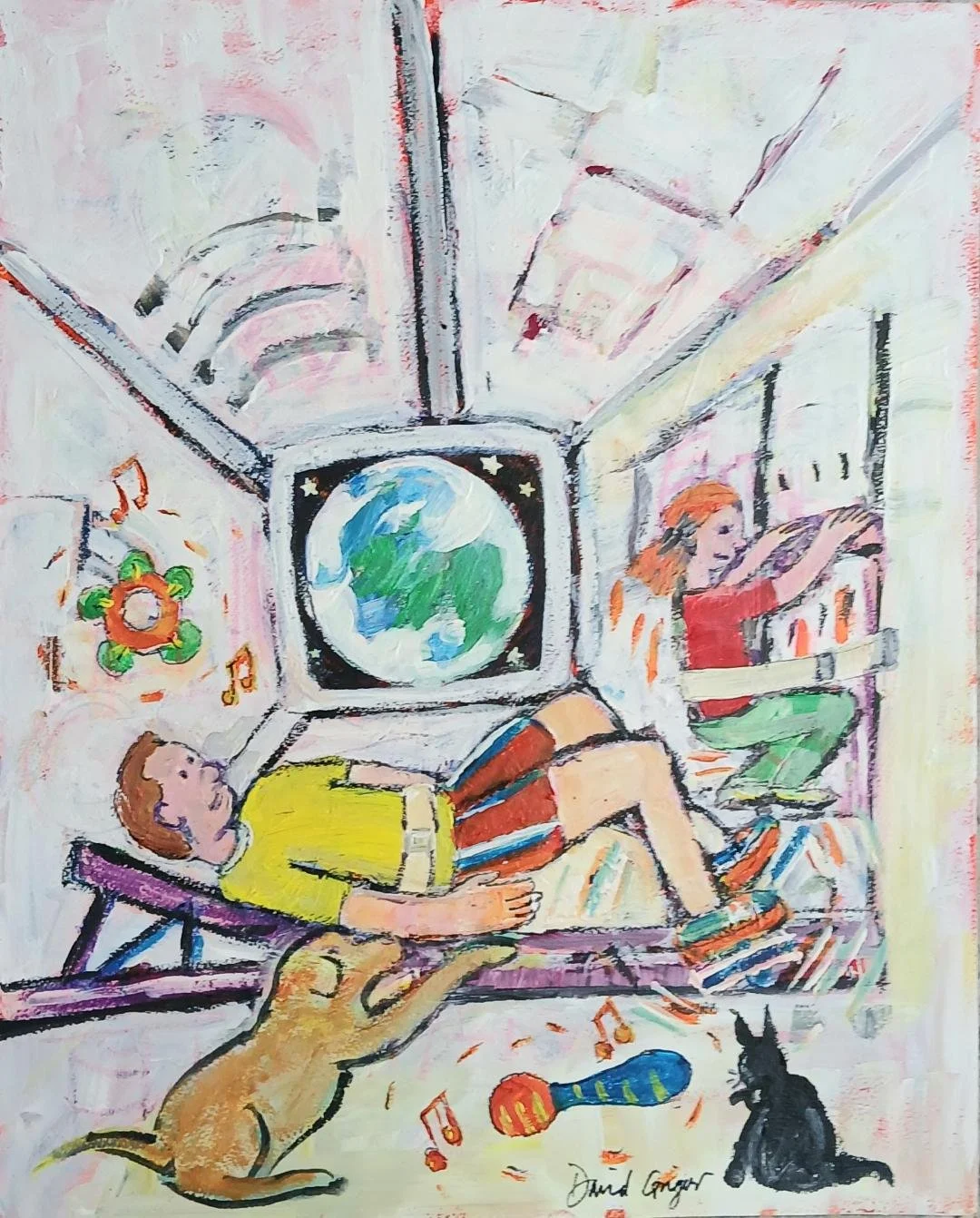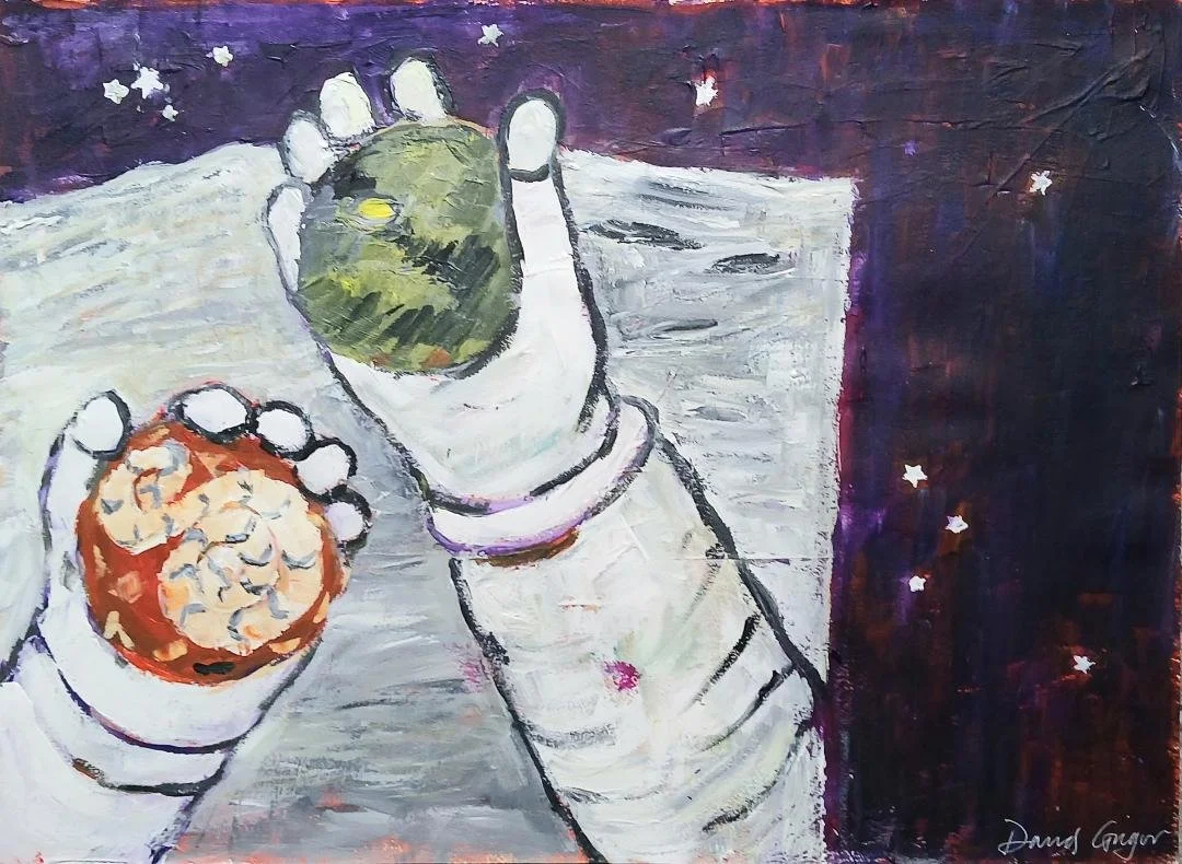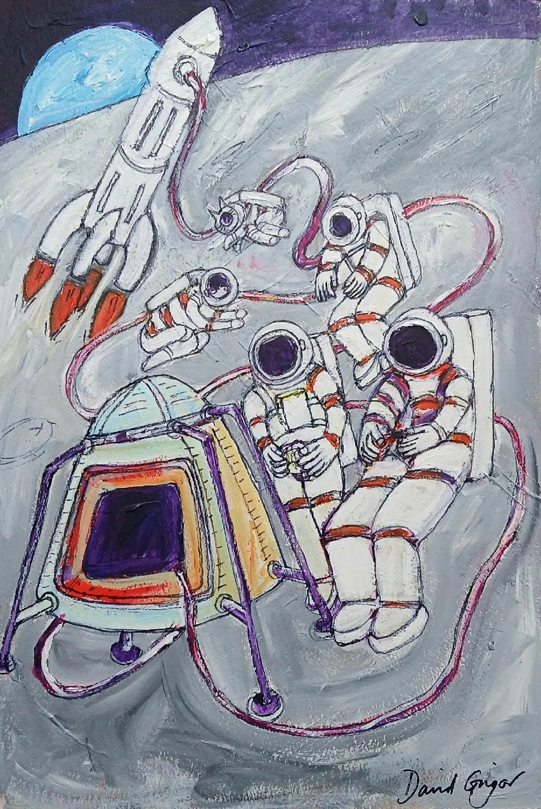 Acrylic paint is a very versatile medium to use. It’s safer to use in the house as it doesn’t smell and it dries quite fast. The colour can be bright and permanent, with a good texture.