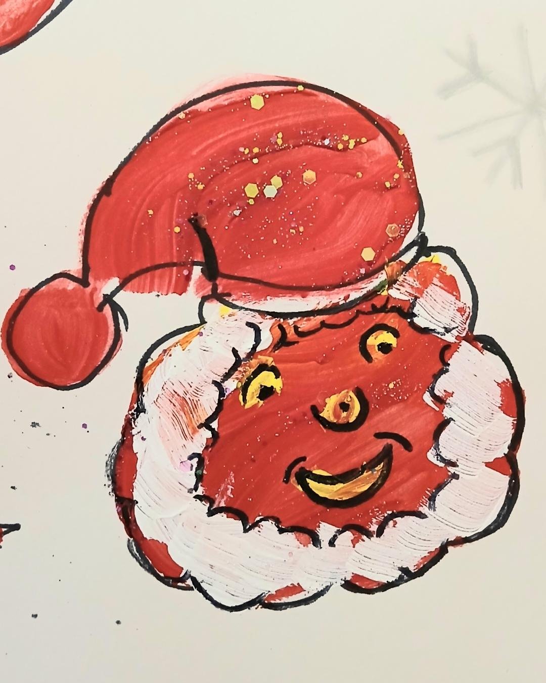 Christmas printing stamps, acrylic paint, brushes, sliver pen or pencil.