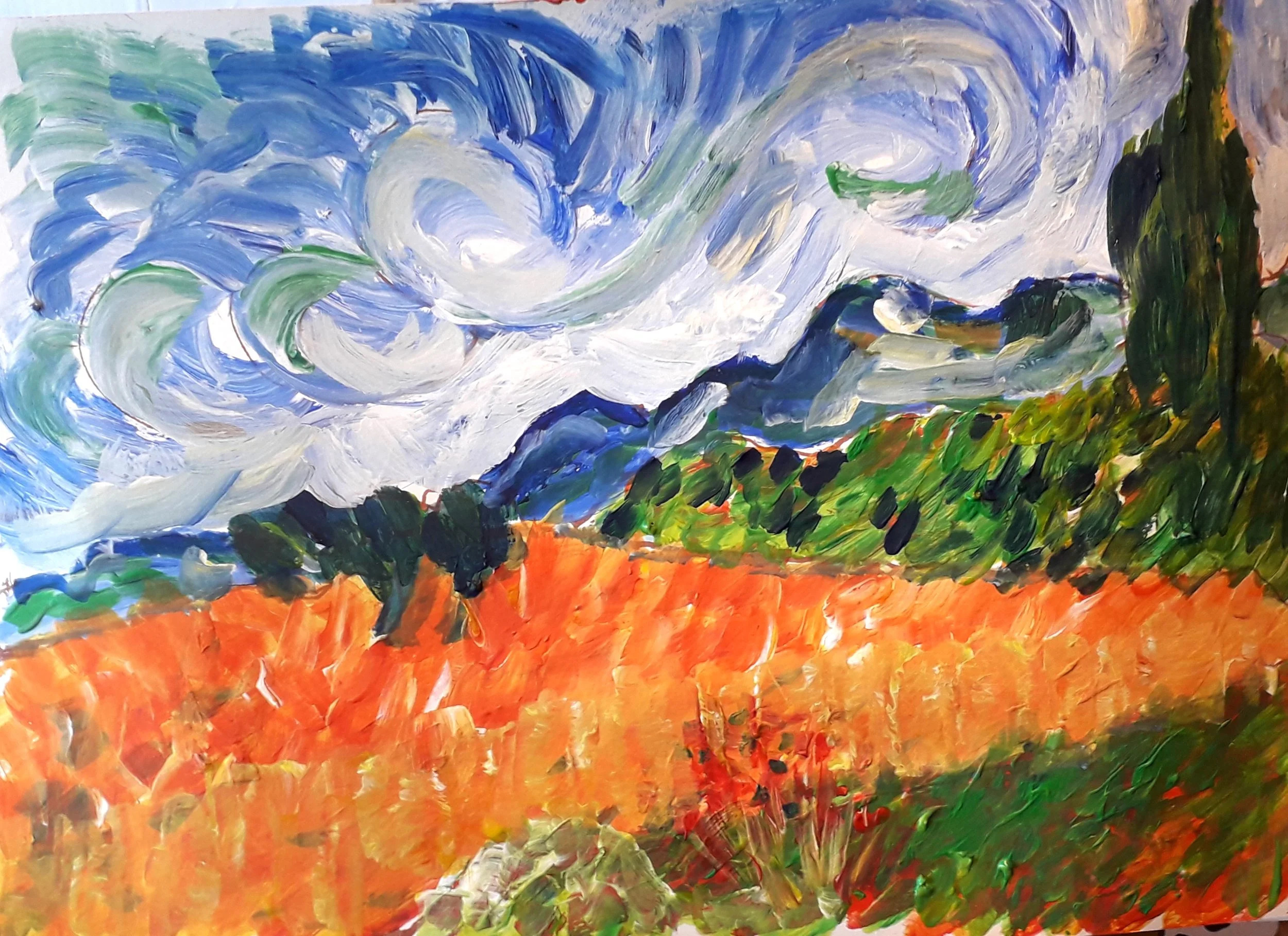 After Van Gogh- ''Wheat field with Cypresses'' 1889