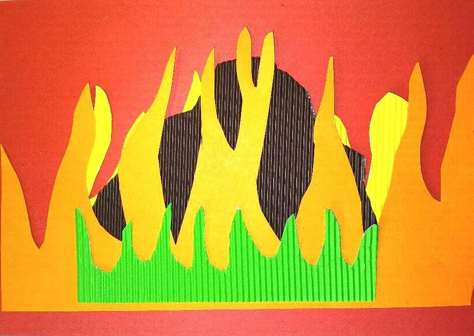 Cut yellow corrugated card to look like flames and stick onto red card in the middle.