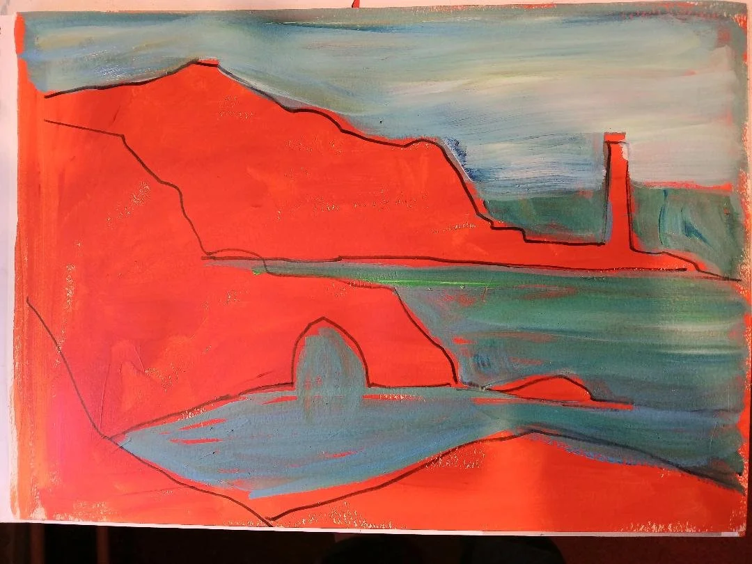 Step 1: choose a colour and start to cover the canvas with acrylic paint.