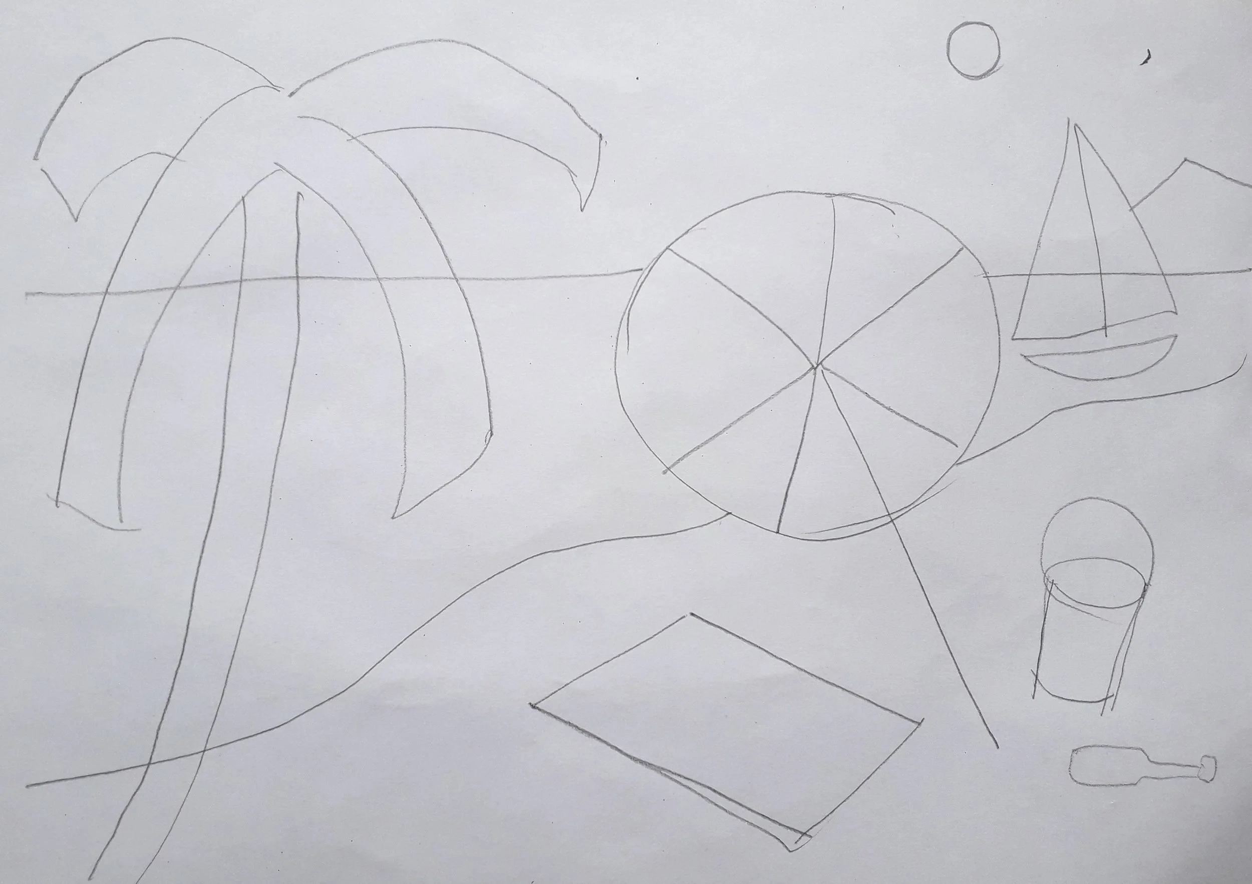 Then the sea and sky with blue and white.