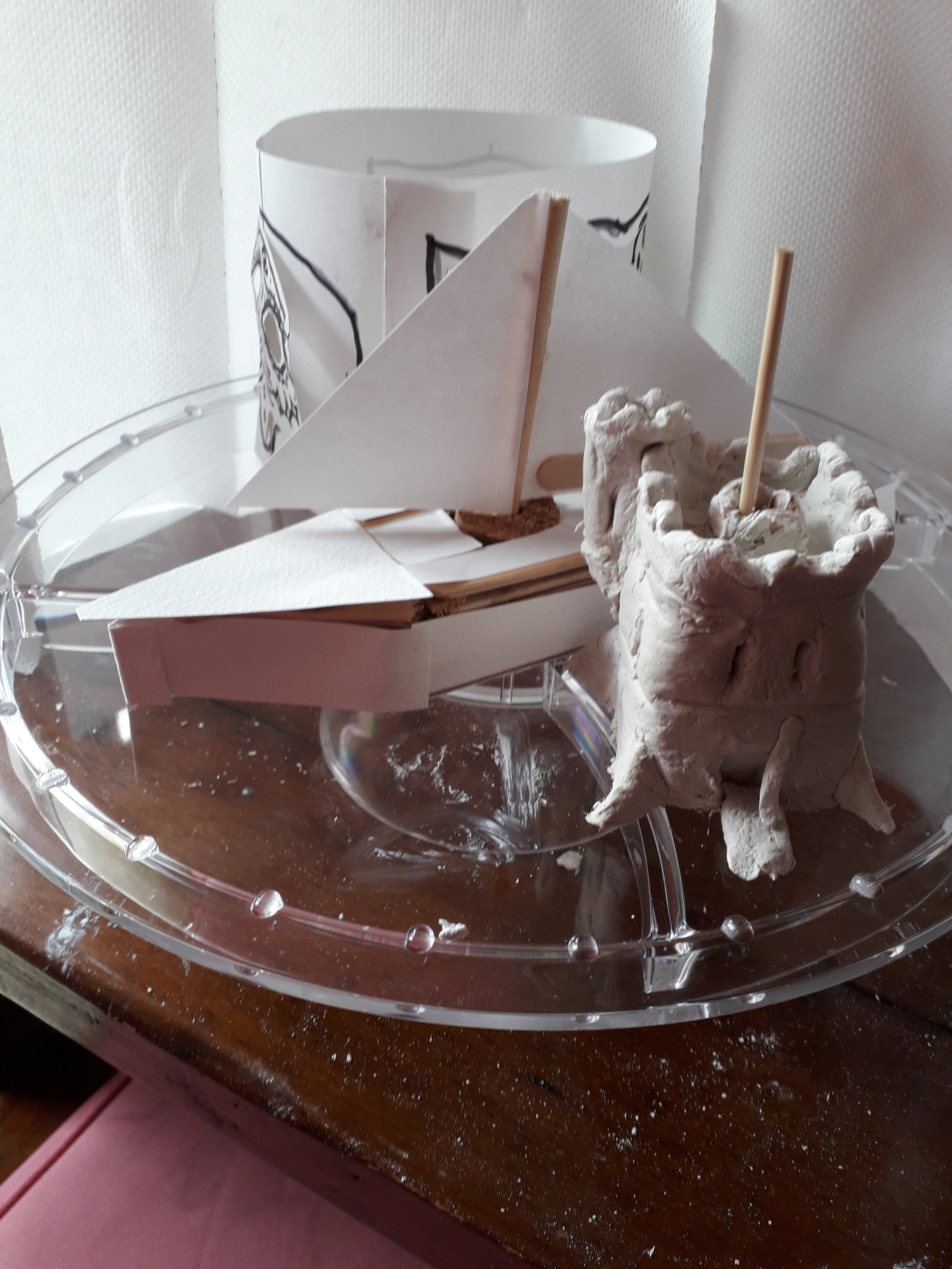 A castle model made from white clay. You’ll have different colour clay so the castle will look colourful.