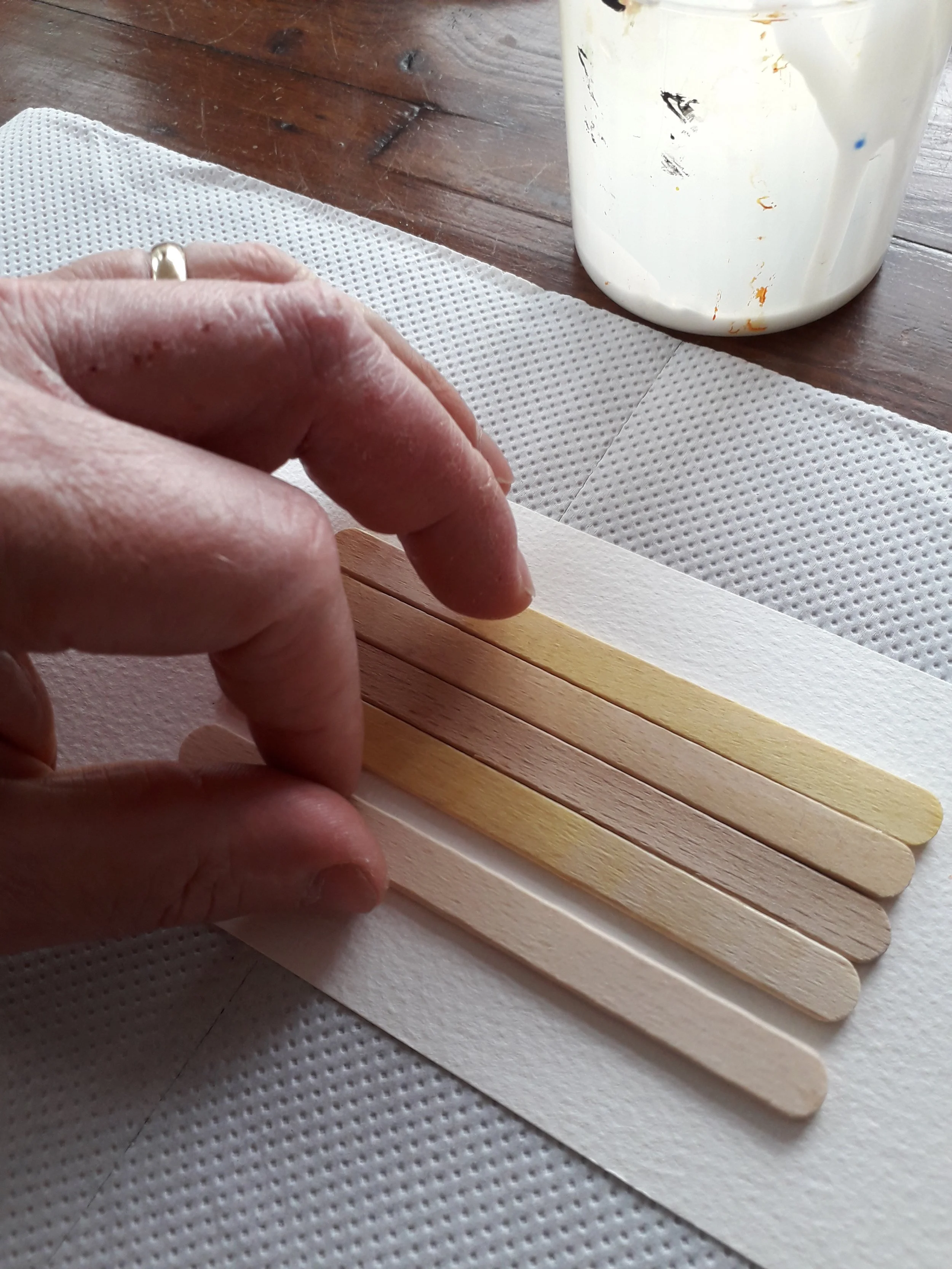 Start by pasting sticks onto a card base in a row of 4 or 5.