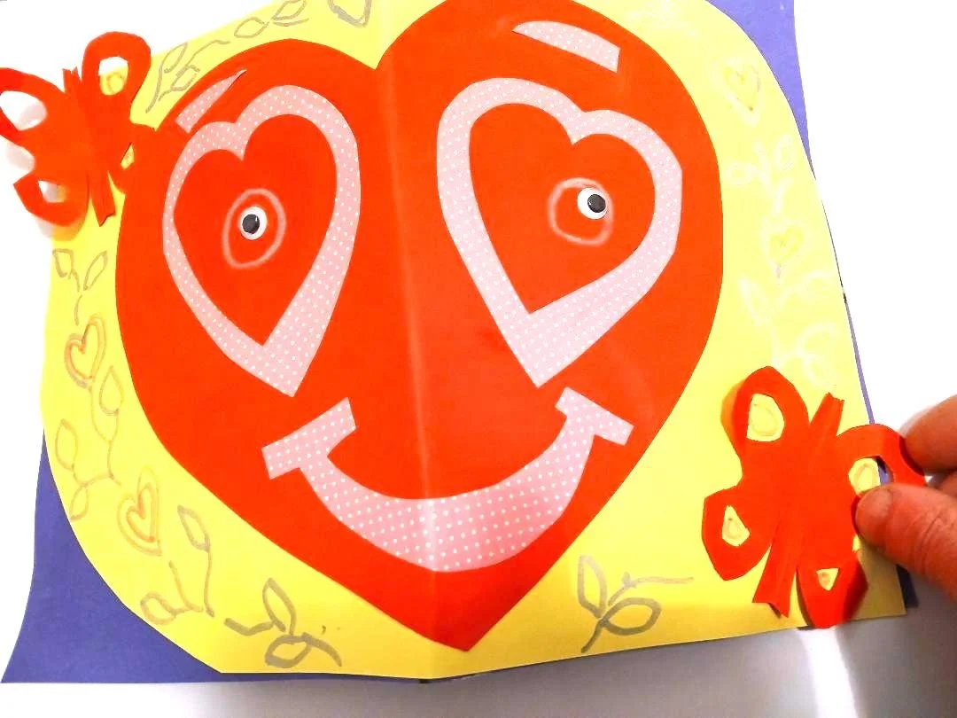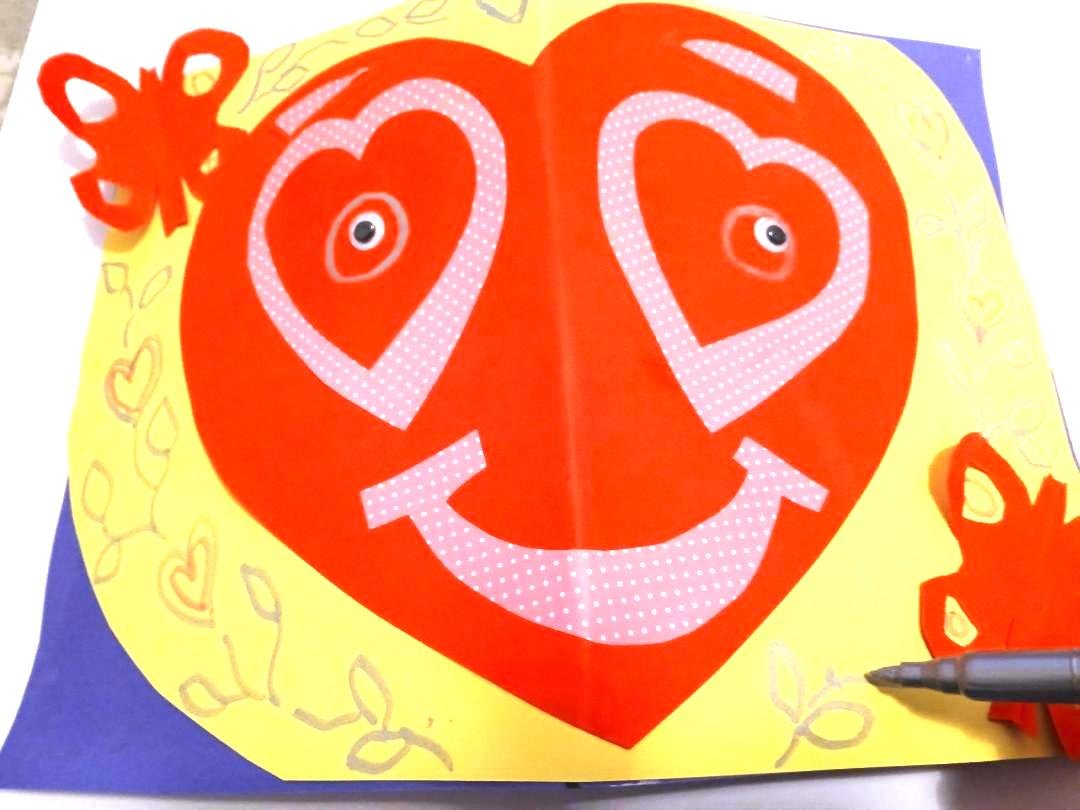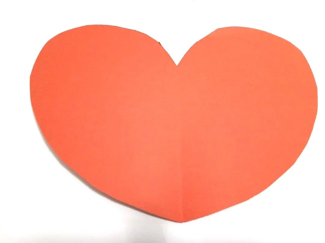 Start with red card and fold in half. Cut into a heart shape ads shown above.