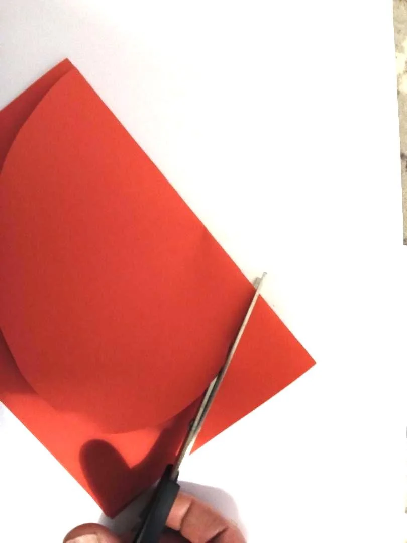 Paste on red heart shape as shown above and cut 2 curves around opposite corners.